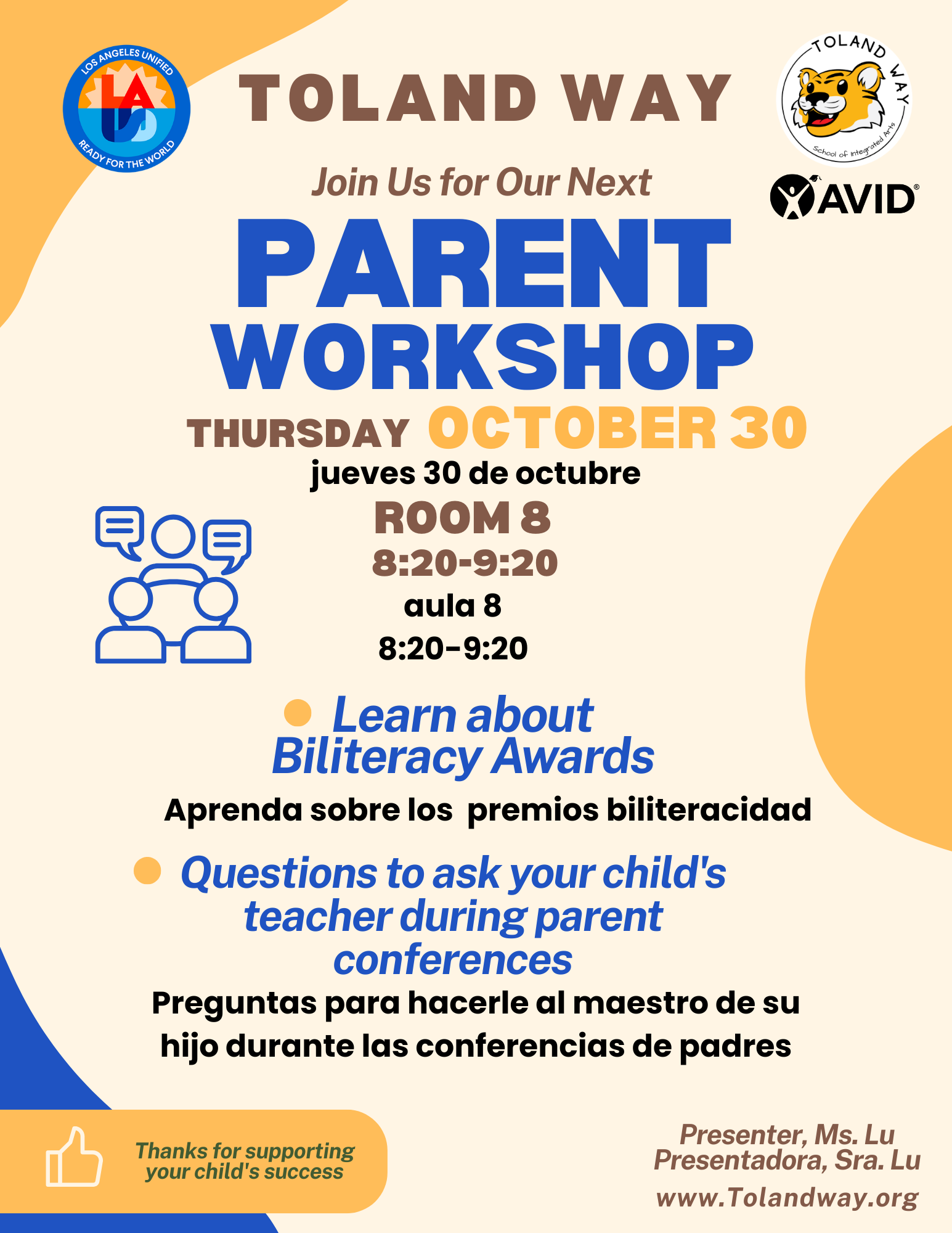 Join us in an information parent workshop! Join Zoom Meeting https://lausd.zoom.us/j/3862778627 Meeting ID: 386 277 8627