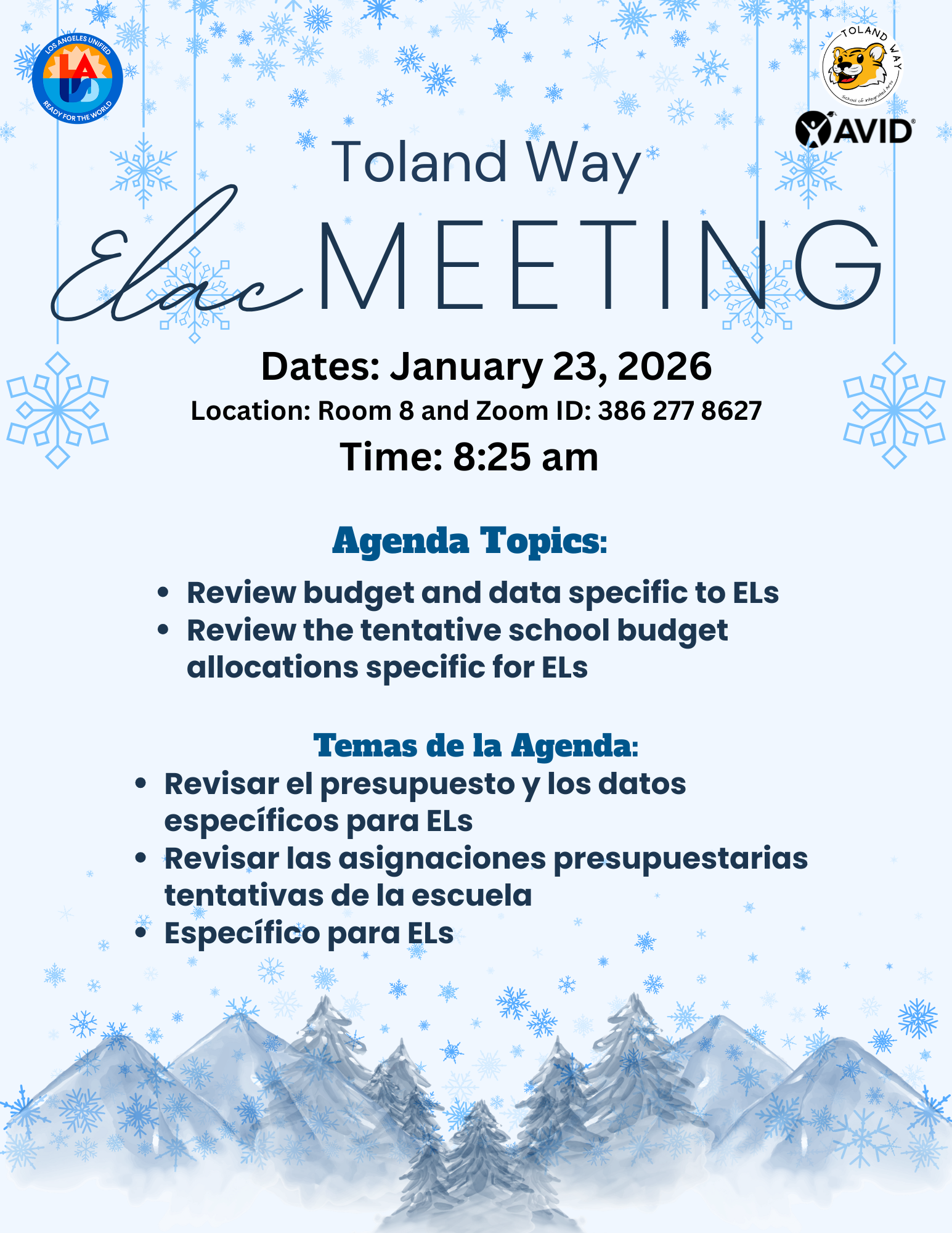We invite you to join us for our ELAC meeting https://lausd.zoom.us/j/3862778627 Meeting ID: 386 277 8627